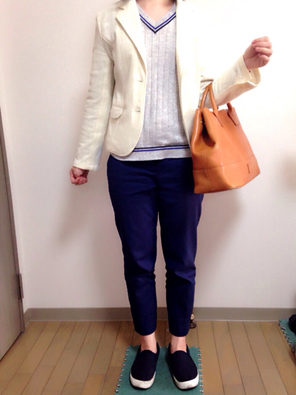 ジャケットは約10年前に買ったお気に入り。 全く見えないけど、花柄の透かし模様のカットソー生地。