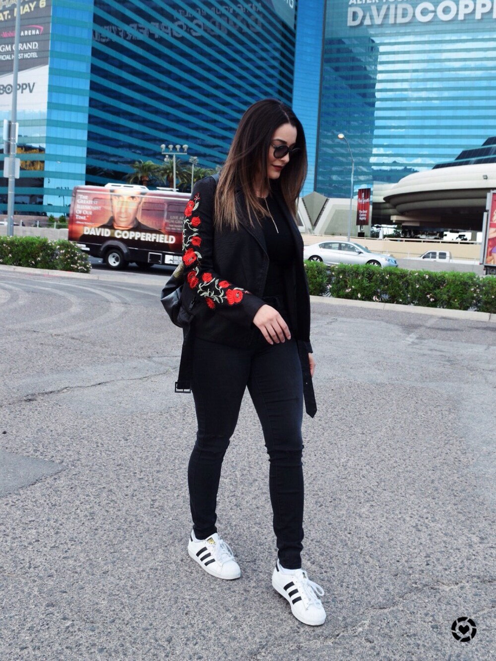 Embroidered faux leather jacket🌹 paired with my adidas for more of a street look