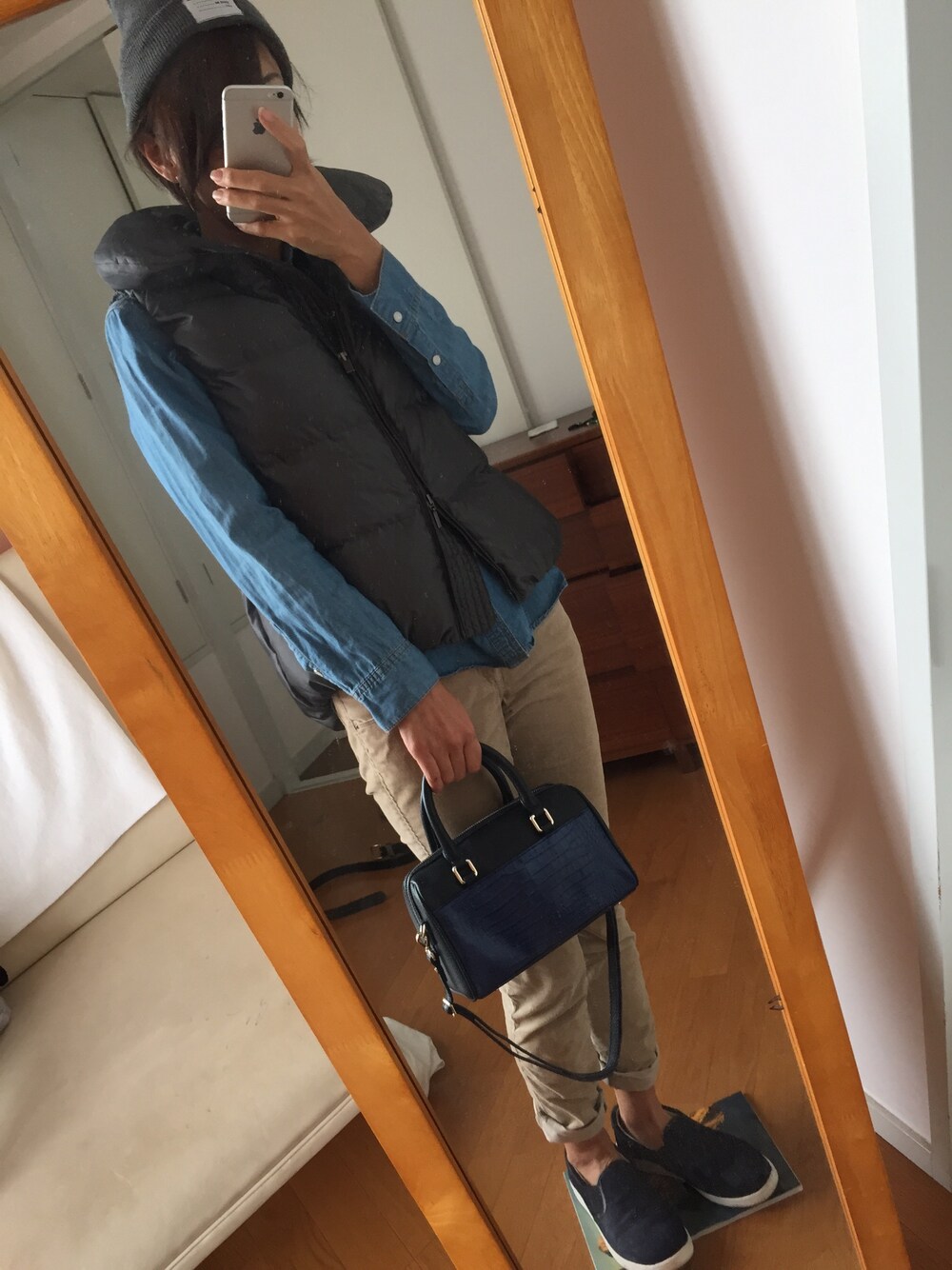 ちょっとインディゴ…?ネイビーでまとめてみました♪ 帽子はH&Mのキッズ売り場にあったものだけどハリがあっていいー。 シャツ:Rope Picnic パンツ:LEE ダウンベスト:theory 靴:mio notis 帽子:H&M(キッズ) ところでこのスリッポン、色んなお店で取り扱いがあるけと、お店によって値段が違うんですね。 私が見た中では最高18,000円ほど… そんなことってあるんですね