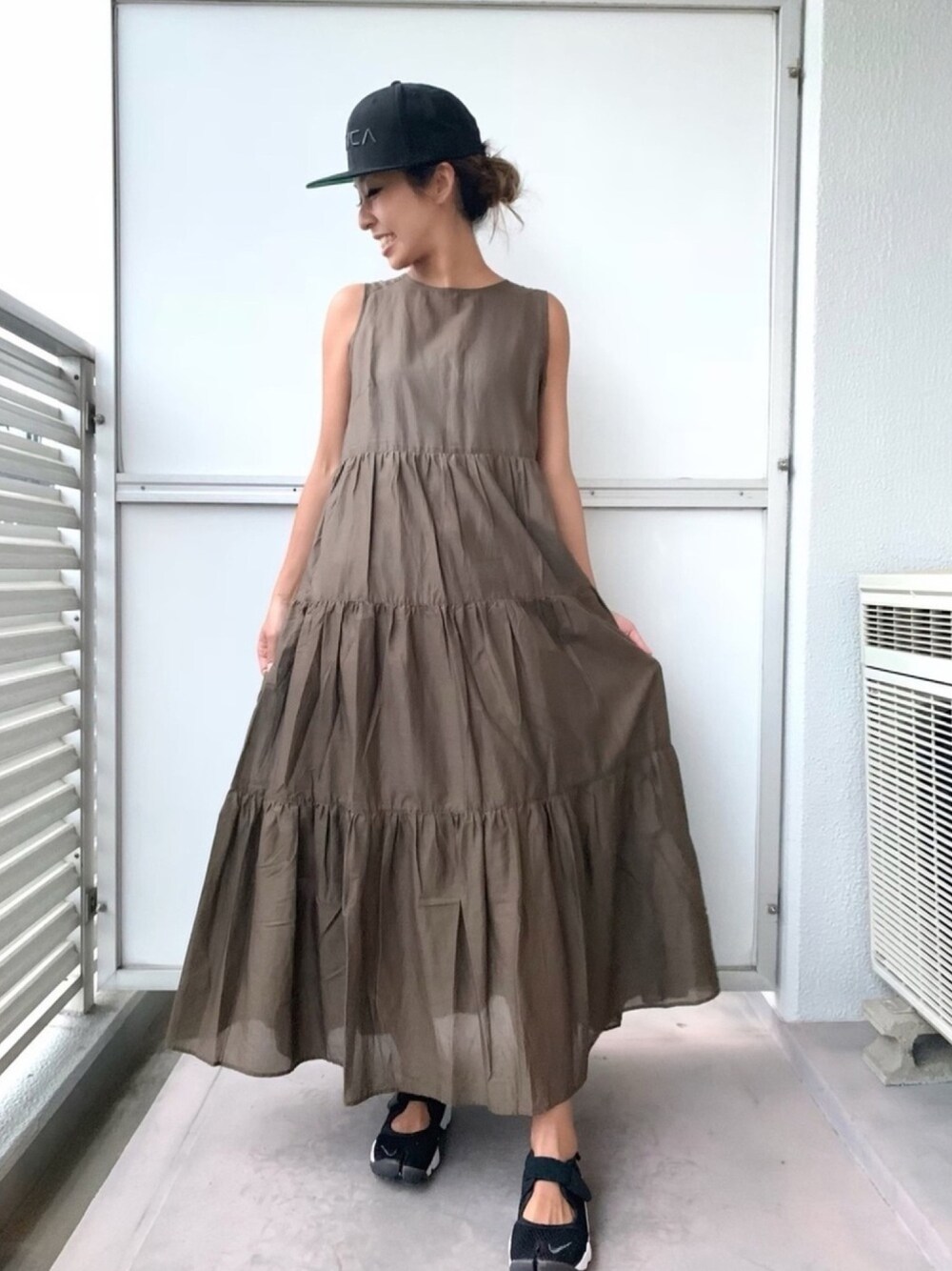 評判良くて買ってみたGUのティアードワンピ😊 持っていないカーキにしました✨ 生地は薄めです! 娘とおソロ買いしました💕