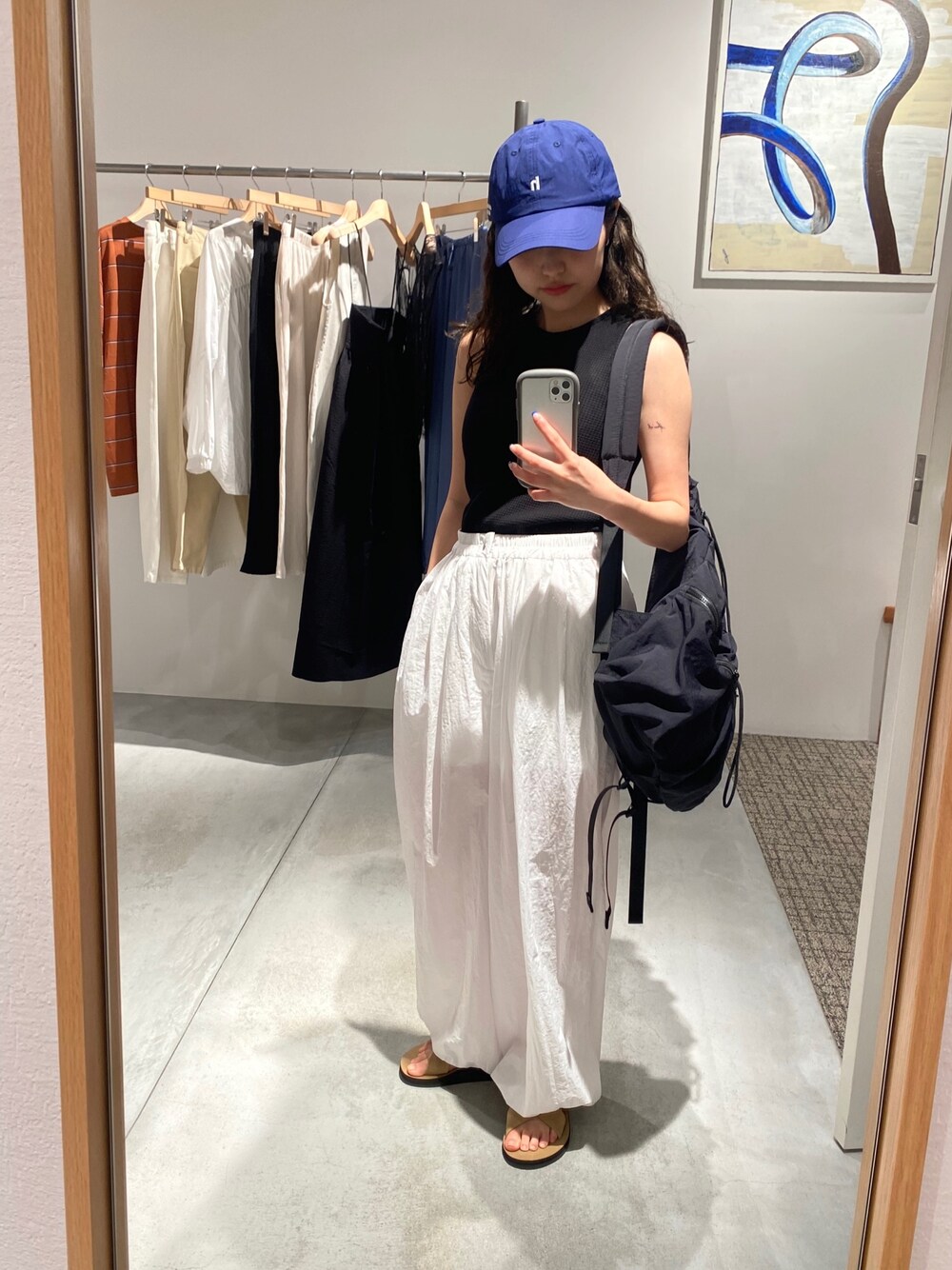 ボリュームと透け感が可愛いパンツ◎ ネイビーのCAPがアクセント🧢♡