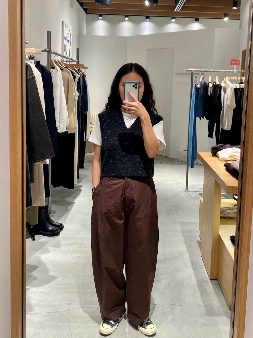 momo(CANALJEAN 大阪店)のベスト「OUVIR(オヴィル) ネップコンパクトニットベスト」を使ったコーディネート