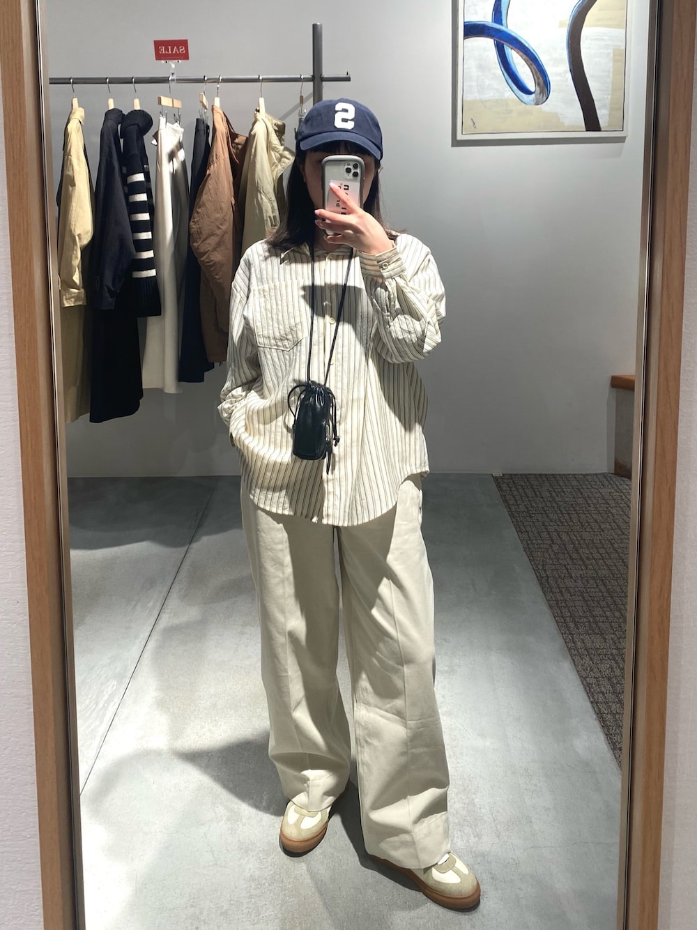 ワントーンでまとめてみた日⚪️ 春ってシャツが着たくなる♡ パンツはハイウエストで履くと低身長でも履けちゃう優れものです👀