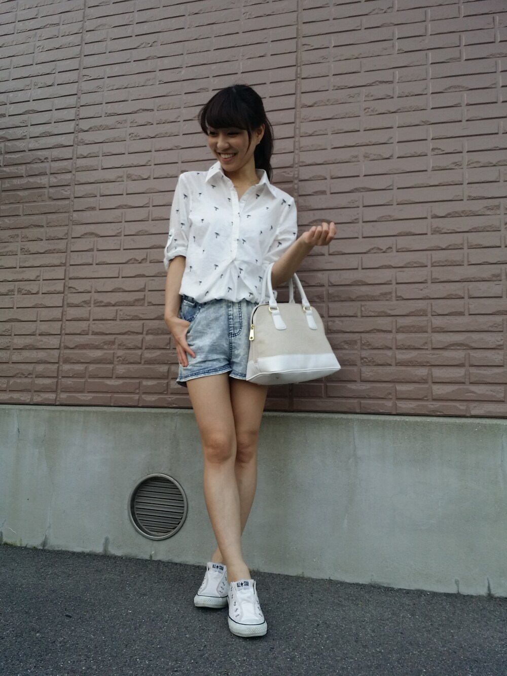 しまむらのパームツリーシャツ♡ しまむらの白バック♡