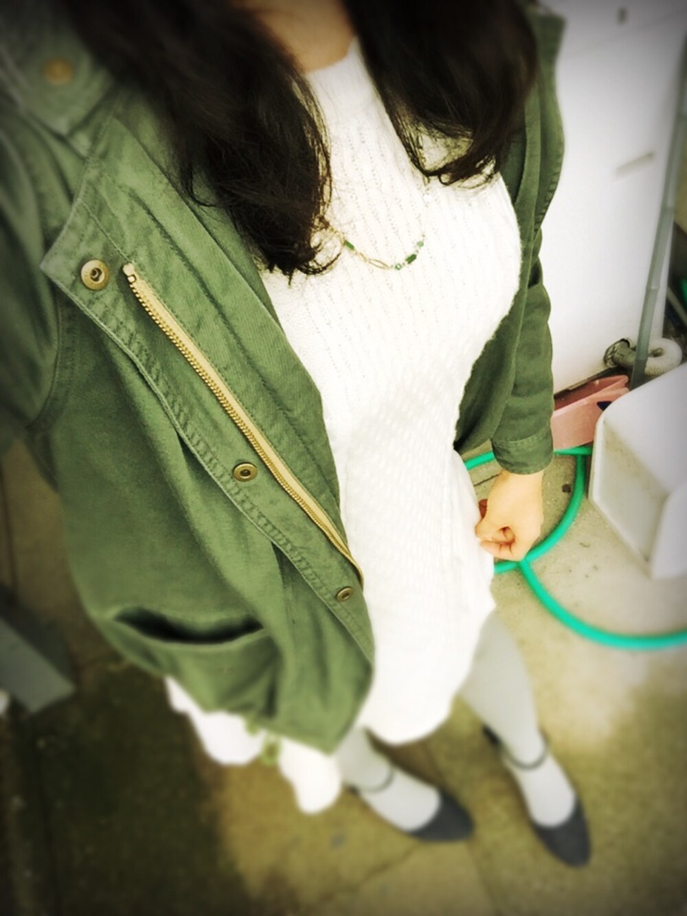 前田のワンピース「【DUO】異素材切替ケーブルニットOP」を使ったコーディネート