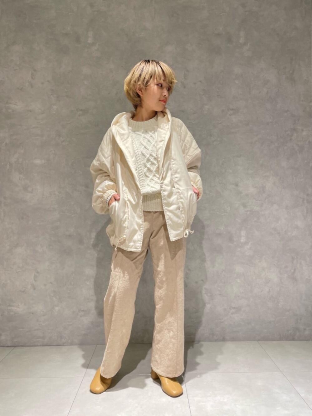【身長】 152cm 【普段サイズ】 トップス36/ボトムス34/シューズ22.5cm 【サイズ感】 トップス:丈短め ボトムス:標準的 アウター:ゆったりめ シューズ:標準的 【素材感】 トップス:軽量感あり ボトムス:透け感も気にならず、程よい張り感 【コーディネートポイント】 やわらかなカラーでまとめつつも、素材感を違うものにする事でコーディネートにメリハリを。