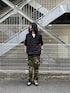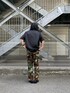 カモフラージュ柄のパンツなのでトップスはシンプルに合わせました。 サイドアジャスター付きなのでウエスト調整できます。 裾に紐付いているのでボリューム調整可能◎