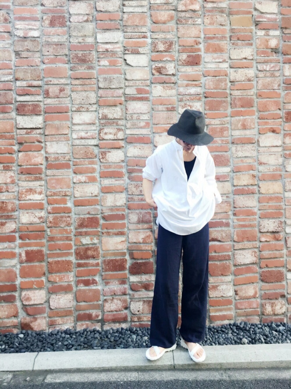 ユニセックスのグーグーシャツとイージーバンツにサンダルでラフゆる🎵