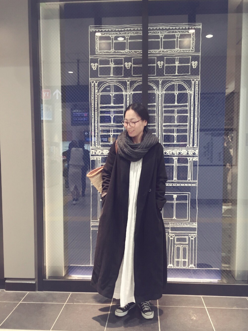m.maedaのストール/ショール「リリヤーンHANDわっかマフラー」を使ったコーディネート