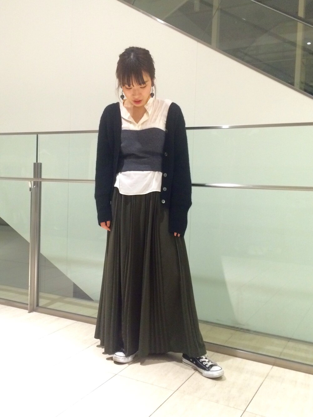 トレンドのビスチェを取り入れたスタイリング。ヤクのカーディガンはとにかく暖かくなめらかな肌触り。ルーズなシルエットがいまの気分にぴったりです✨