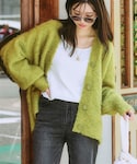 キレイ色のもこもこニットカーディガンは、春先まで活躍しそう。 スウェットパンツ合わせで、ラフで、スポーティな休日スタイルの完成です。
