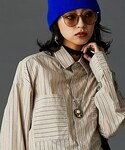 maei8(nissen本店)のシャツ/ブラウス「綿100%ストライプビッグシャツ<大きいサイズ有>GEVS.」を使ったコーディネート