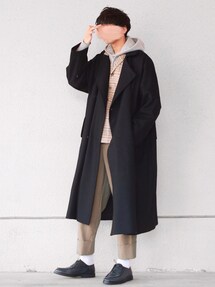 きれいめコーデ🤓 チェスターコート ニット ワイドパンツ プレーントゥ ネイビー&ベージュ&グレー