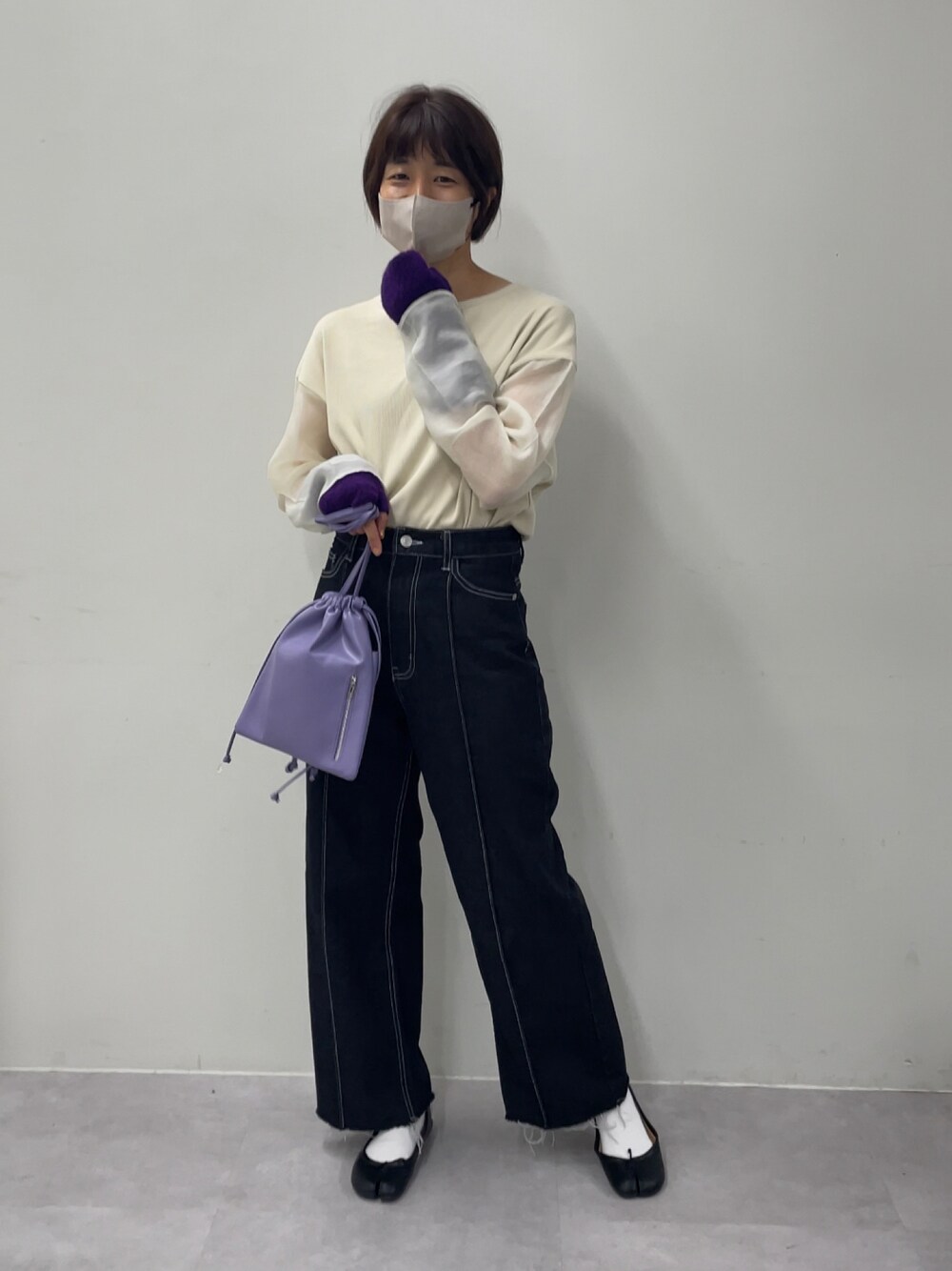 ラベンダーコーデ💜 意外と何でも合わせやすくって今期お気に入りのカラーです。