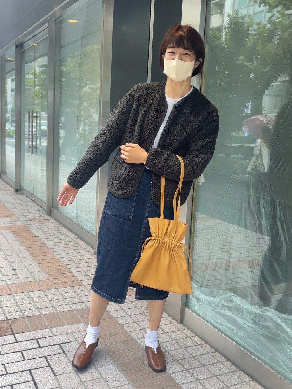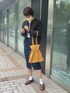 新作の巾着バッグ、マスタードをチョイスして秋っぽいコーデにしてみました🍁