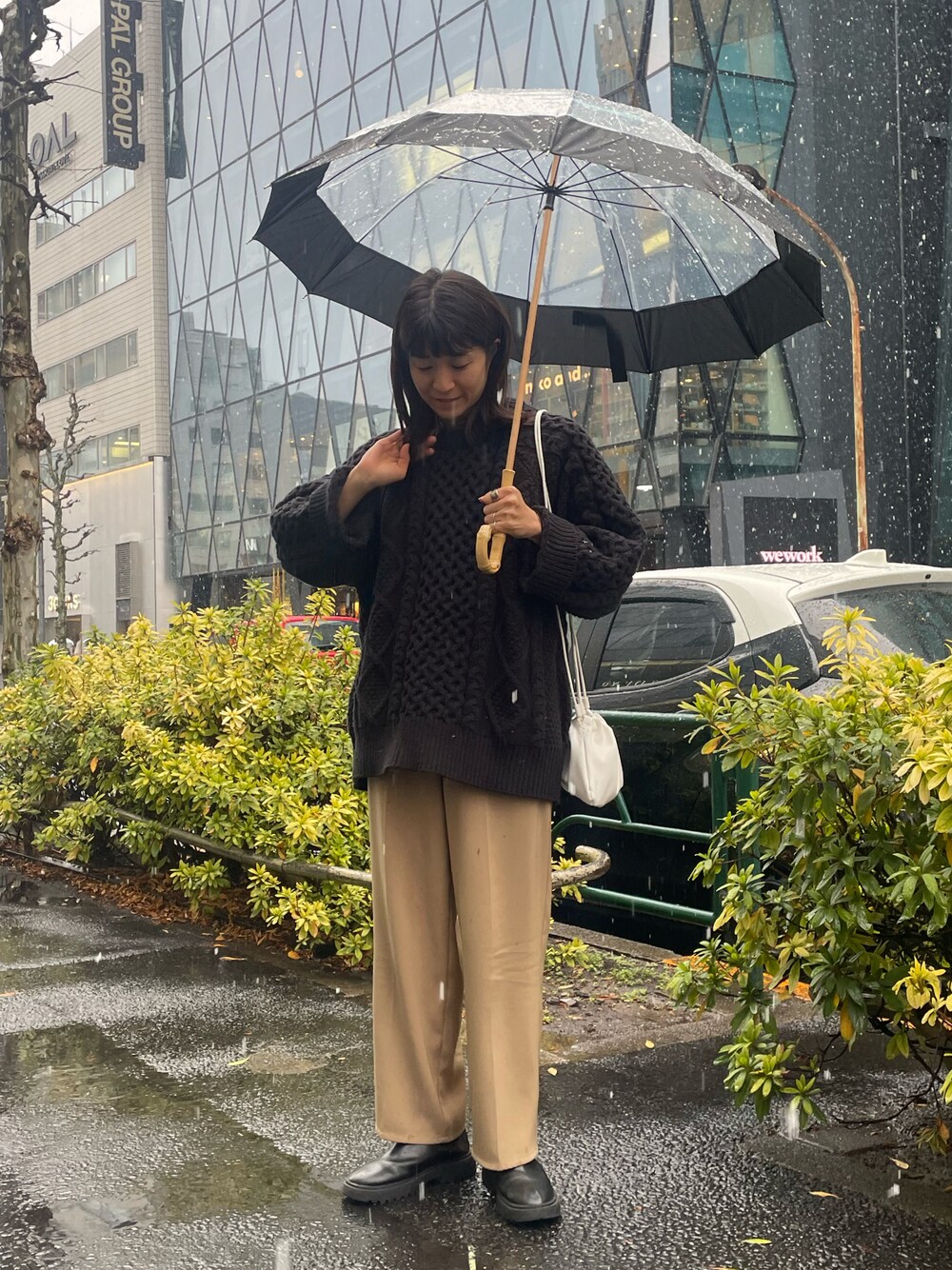 aya( BIRTHDAY BAR 本部)の長傘「バイカラークリアアンブレラ」を使ったコーディネート