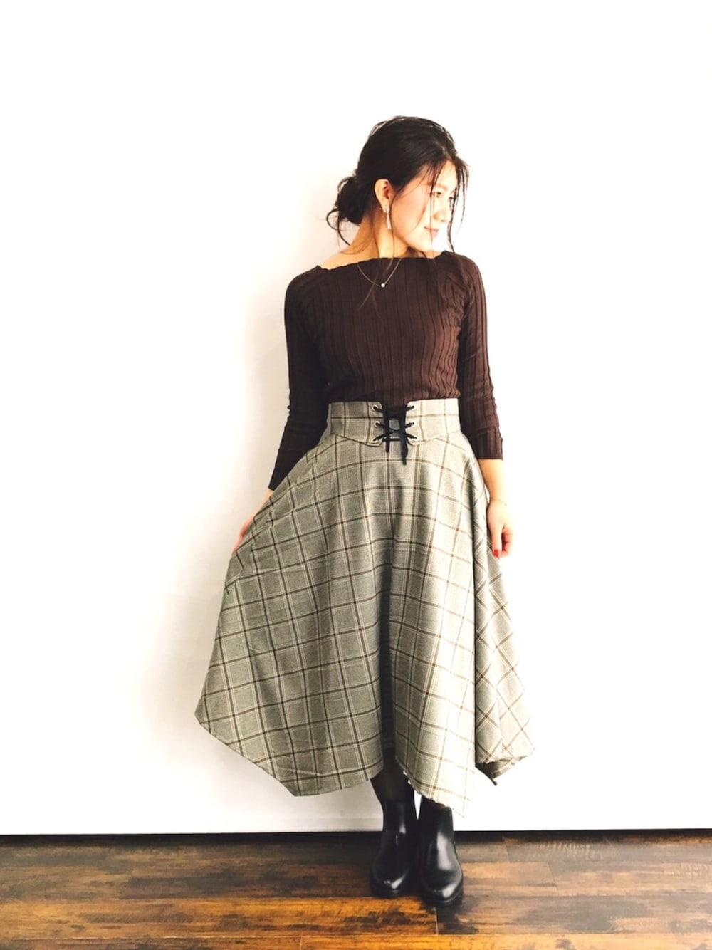 2017.10.03 fifthのリブニット。 型違いで揃えたい優秀ニット! #リブニット #fifth #ロングスカート #チェックスカート #おしゃれさんと繋がりたい