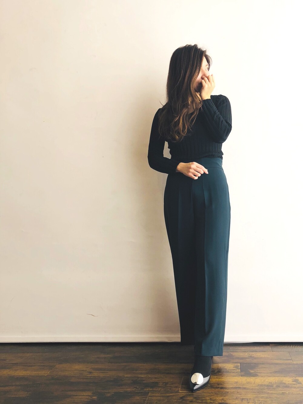 2017.12.25 merry Christmas🎄 もみの木色のパンツで💚 #タックパンツ #リブニット #フラットシューズ #おしゃれさんと繋がりたい