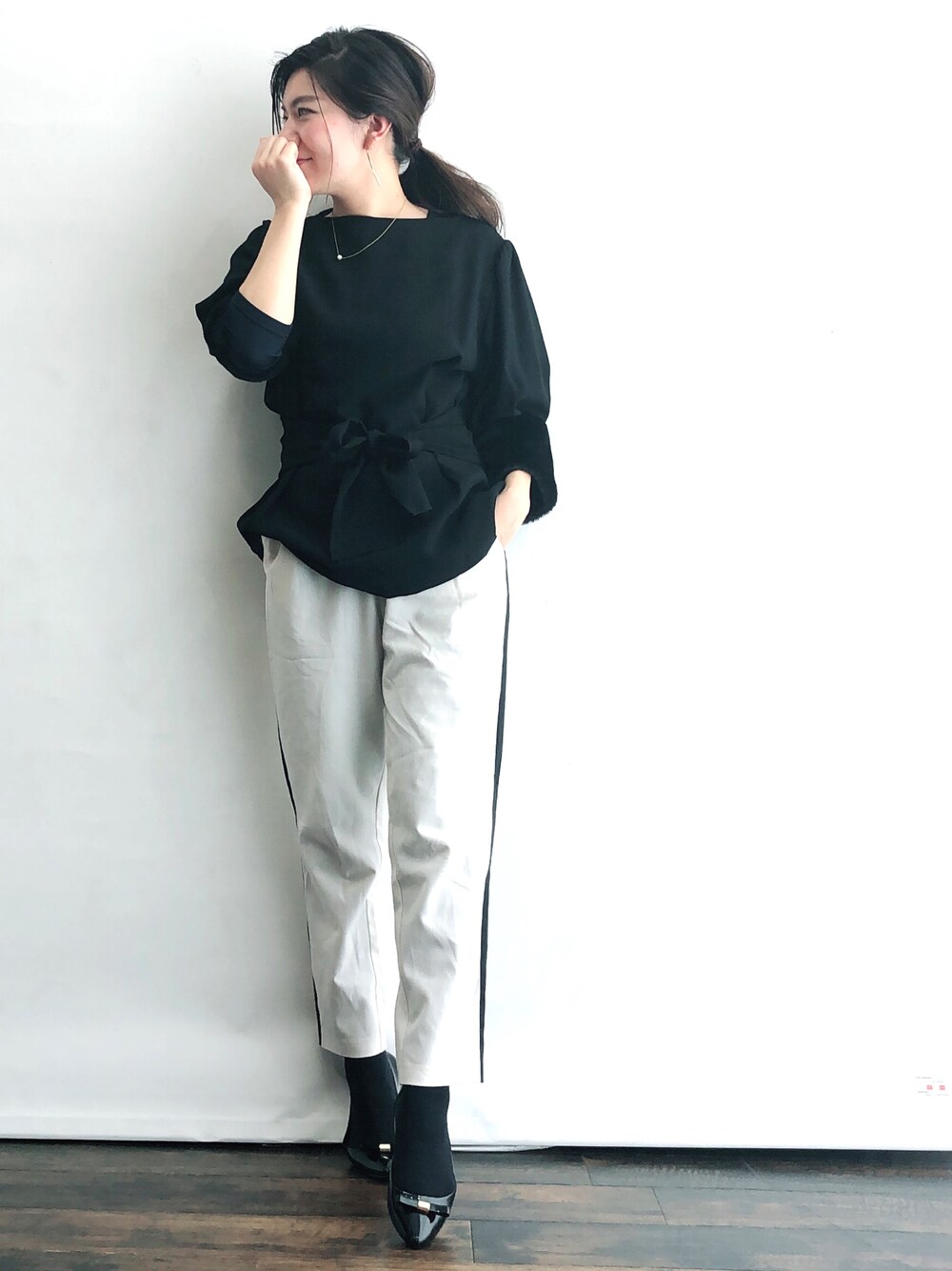 2017.12.26 モノトーン●○ #タックパンツ #袖ファー #リボン付きブラウス #おしゃれさんと繋がりたい