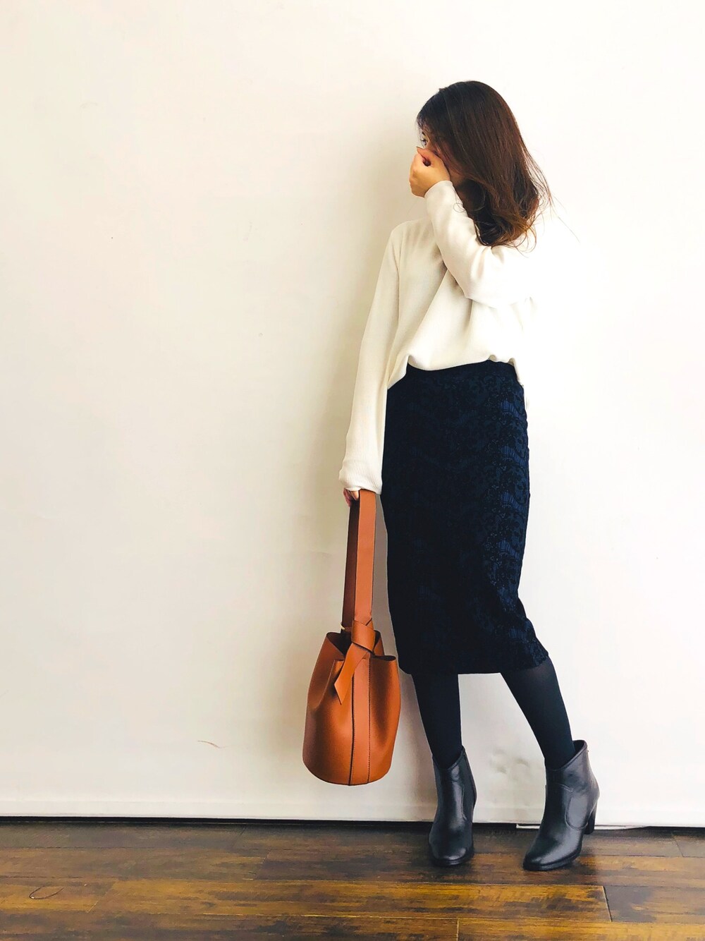 2018.01.09 今日あったかかった😊 #ニットプルオーバー #レース柄スカート