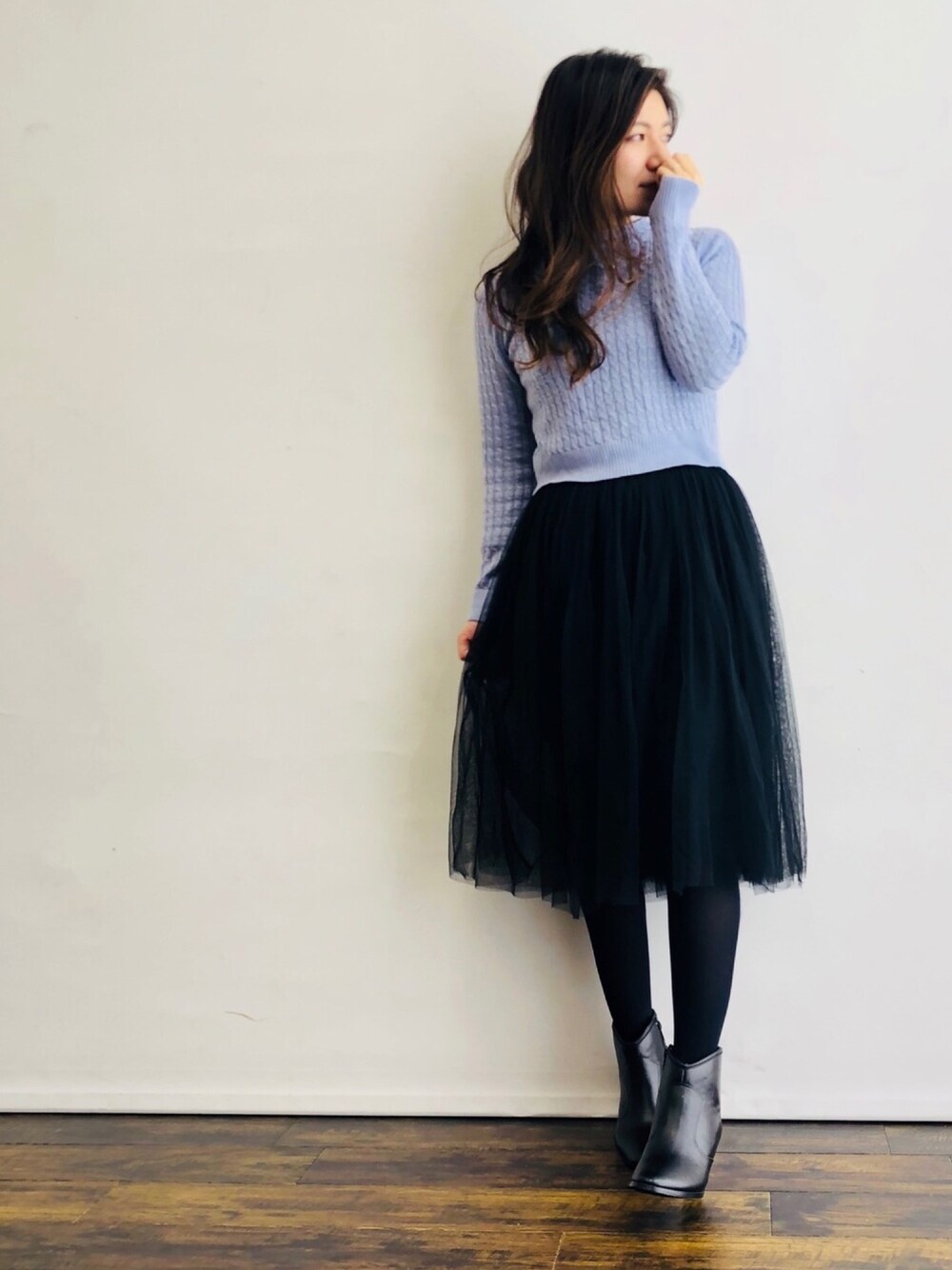 2018.01.11 今日はバタバタであっという間に夕方😭 #ケーブルニット #チュールスカート