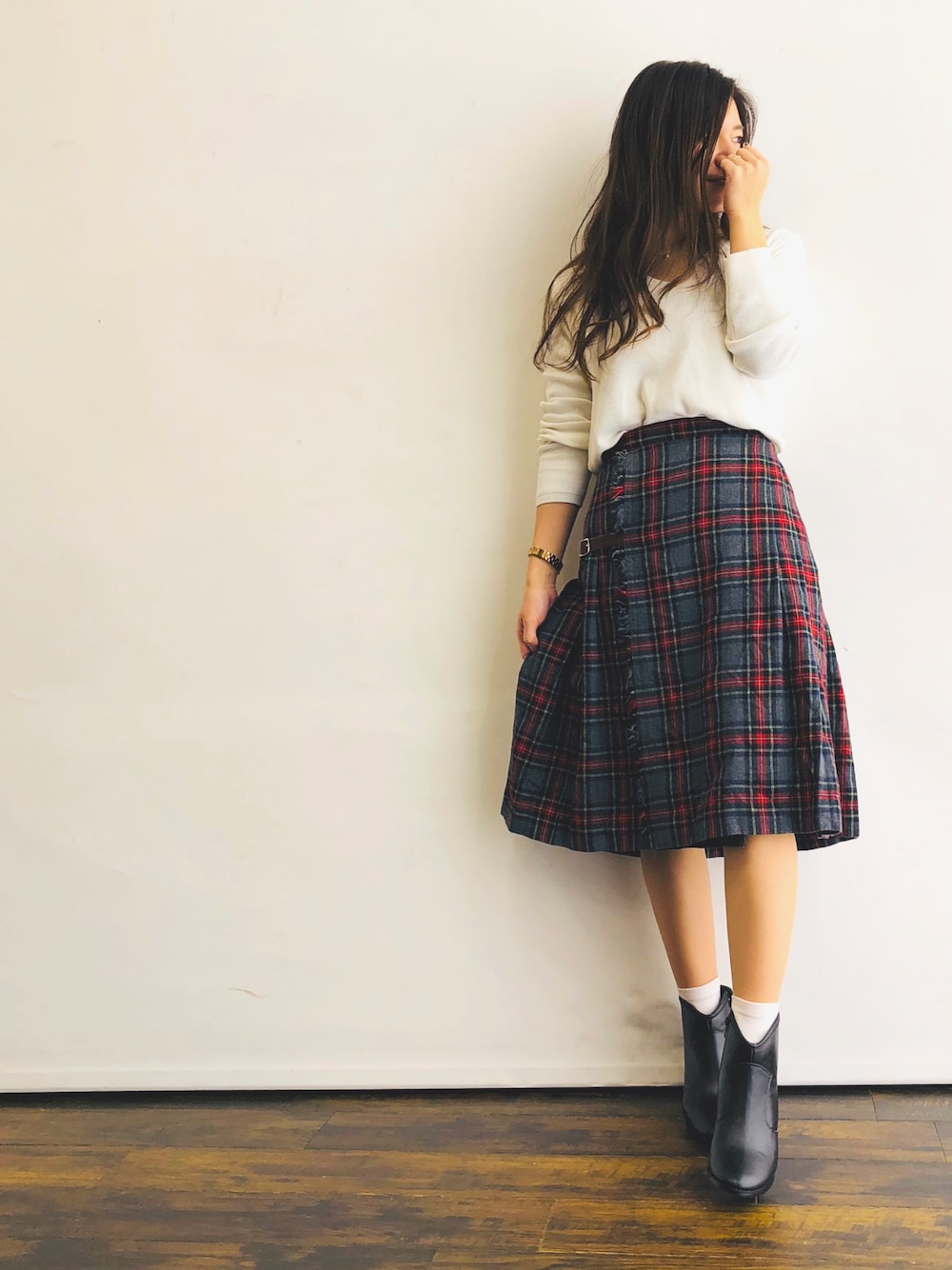 2018.01.23 雪☃️滑るから帰り気をつけないと! #レインブーツ #キルトスカート