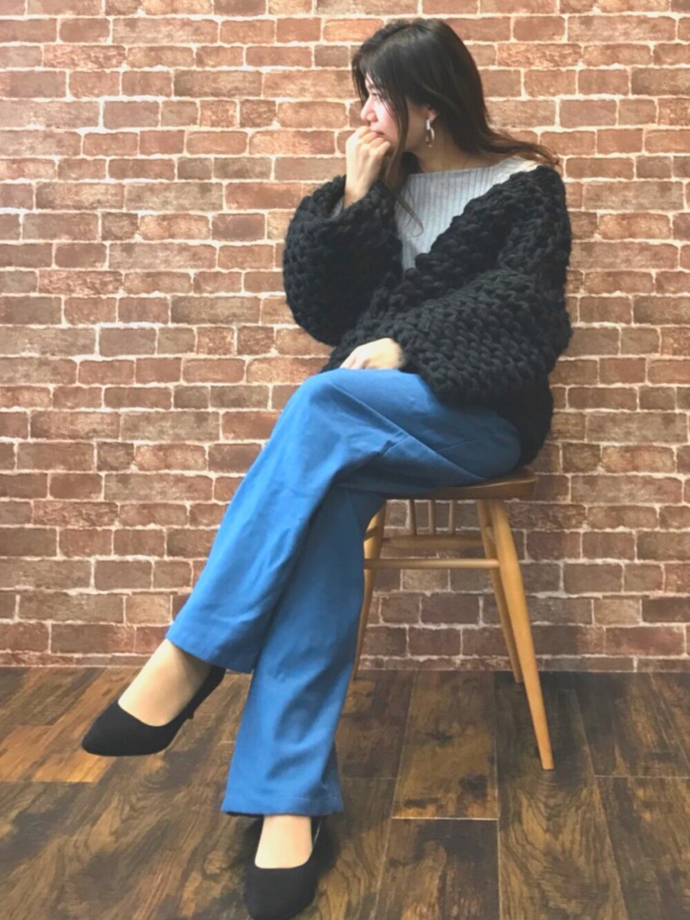 2018.01.28 さむいのでニット×ニット #リブニット #ワイドパンツ