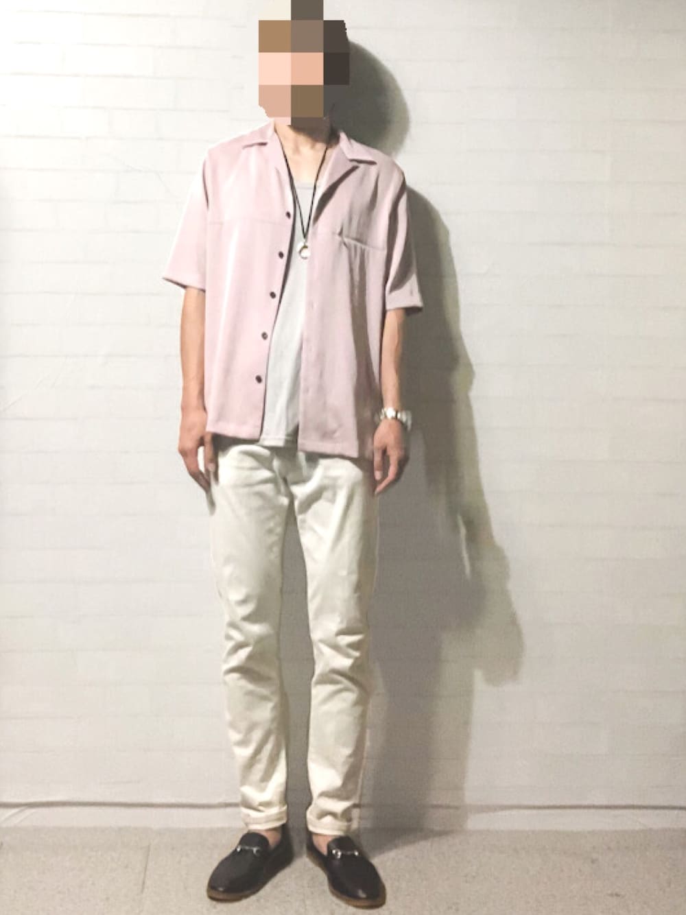 閲覧いただきありがとうございます🙇♂️✨ ピンクシャツ×スキニーパンツ 明るい色でまとめることで、少し涼しめな印象になりますね🎶