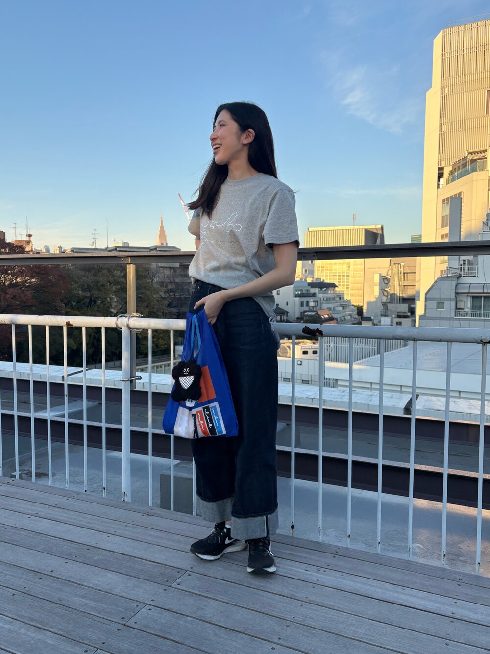 人気イラストレーターumaoさんとのコラボアイテムの予約販売がスタートしました✨ 商品はどれもアートから飛び出てきたようなデザインで、 自分の好きなアートをそのまま持ち歩くことができるumaoファンにはたまらないアイテムたちです💙 EC限定色グレーのTシャツとデニムにキュートなエコバッグを合わせました💫