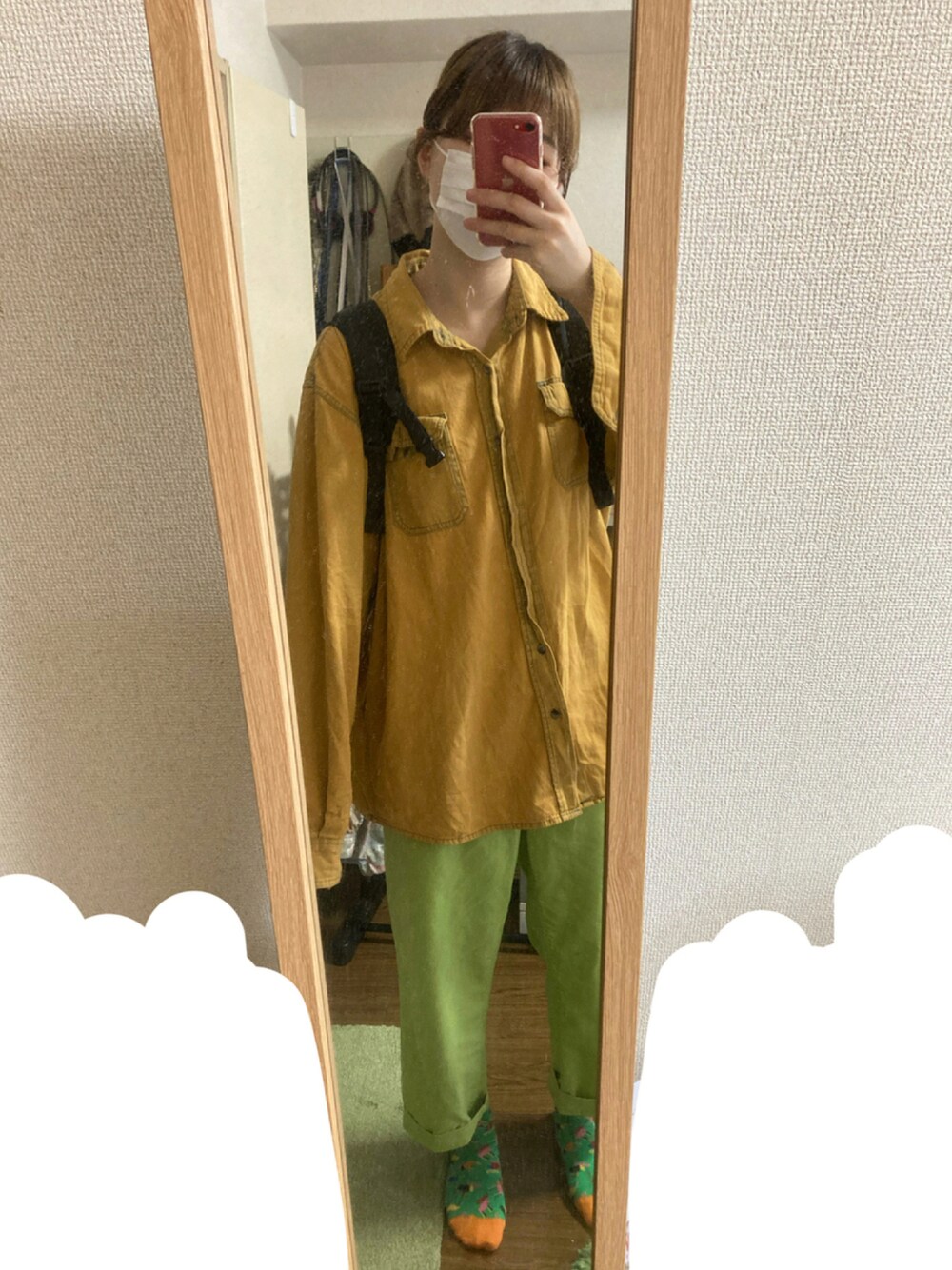 何日か前の気分の乗らない朝コーデ. 今日も靴下派手やなあって言われた