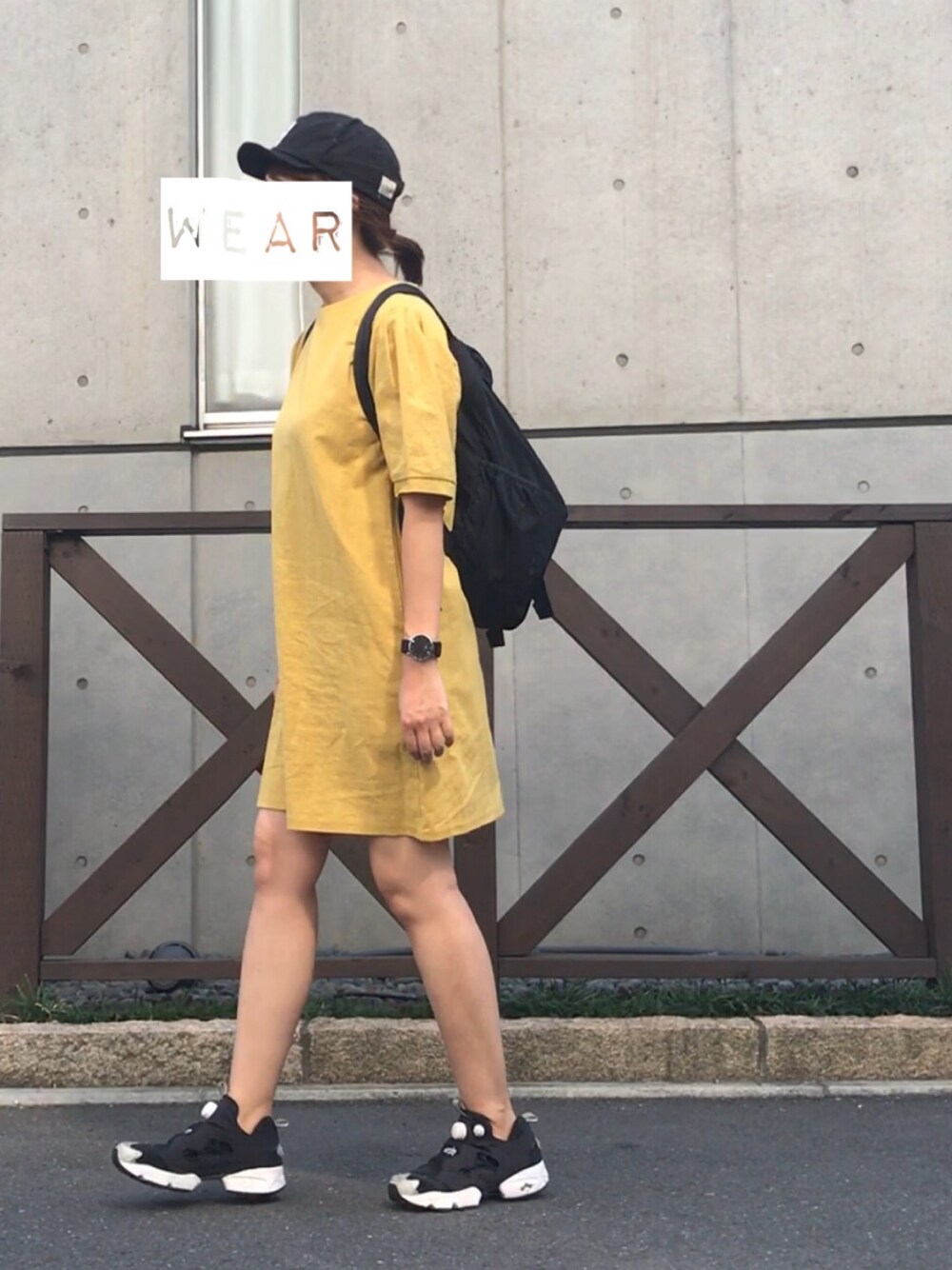 韓国のA-LANDで購入してきたからし色ワンピ。 黒小物でカジュアルに着るのが好きです💛