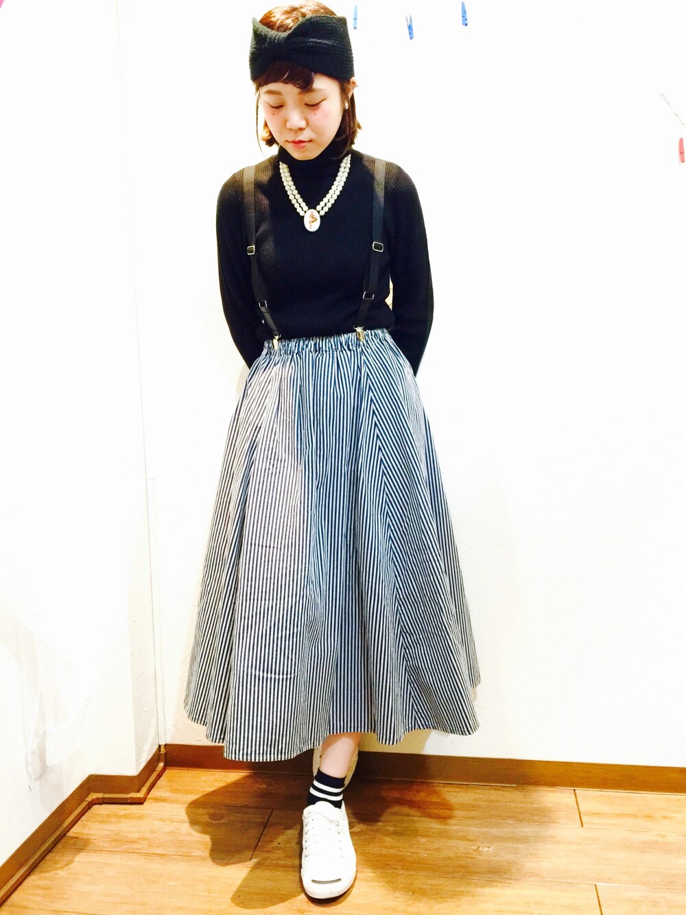 もうすぐハロウィン‼︎ 今年も残念ながらお仕事です。 今日はサーキュラースカートに黒のタートルネック。 パールのアクセでクラシカルに♡ 硬くなりすぎないように大好きなスニーカーを、