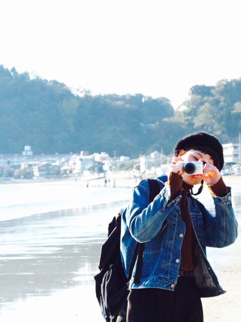休日を美容師の友達とカメラ女子 なかなか使いこなすのに大変 まだまだ慣れませぬ。 稲村ヶ崎を背景に友達に撮ってもらいました♬