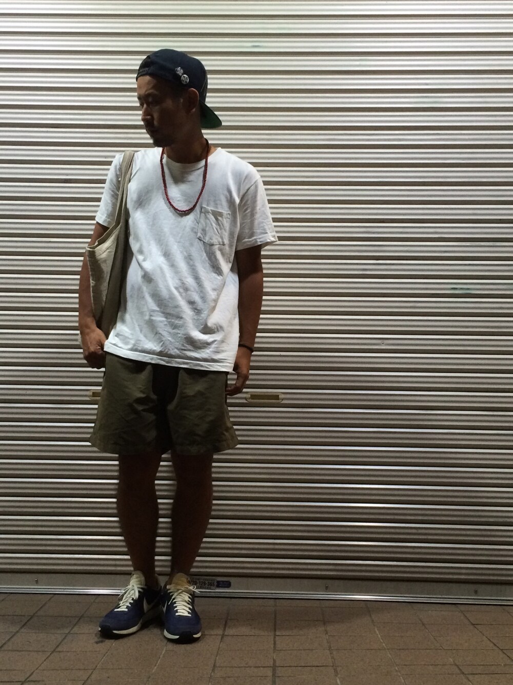 こんばんは! 今日もTシャツ×ショーパンというラフなコーデ! 日焼けし過ぎてて、 夜だと肌がほぼ黒に見えますね^_^;