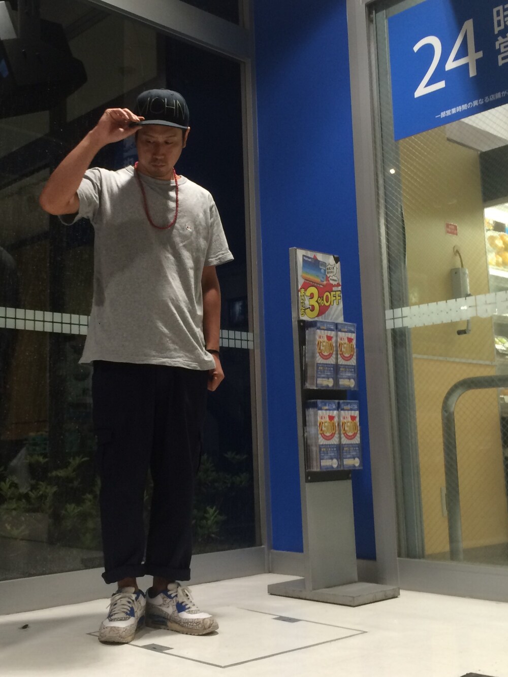 こんばんは! 今日も昨日と色違いのカーゴパンツにTシャツ!! XLサイズでワイド感をアップさせてみてます!! 明日から夏休み! 買い出しにSEIYUへ!!