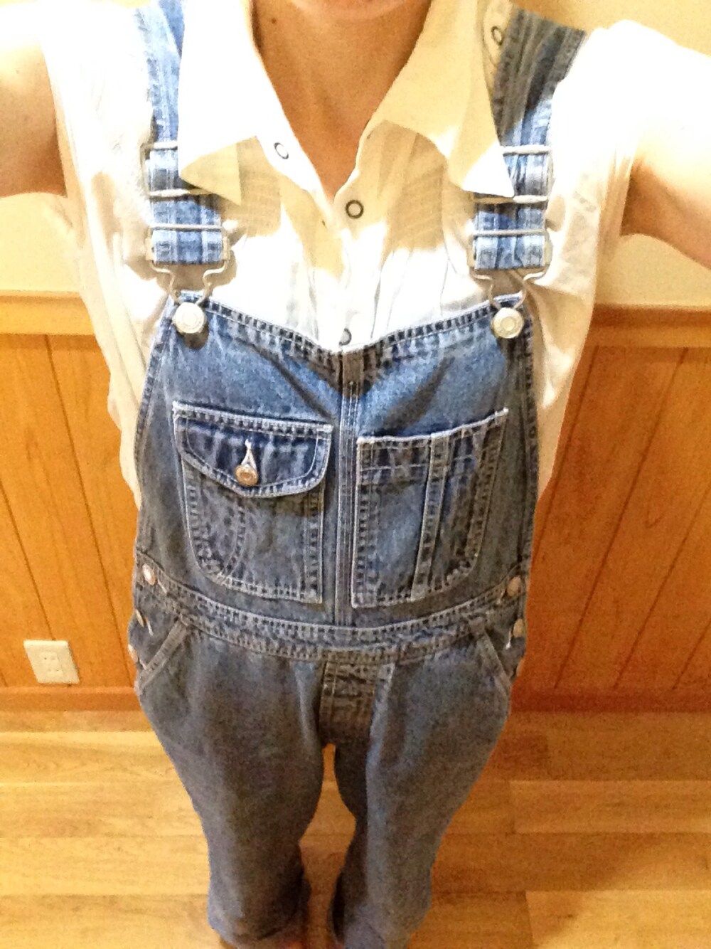 今日のラクチンコーデ。 率の高いデニムのオーバーオールは、ハネムーンで行ったハワイの88tees(合ってるかな?)で購入した古着。子育て中はこの深いポッケにスマホと鍵を入れておけば、ちょっとのことでは落ちないので助かってます❤︎ シャツはすけるので、下には大概UNIQLOの黒の500円のタンクトップを着てます。かなり優秀なんでリピ買いしてるくらい。シャツのバックにはペガサスのプリントがあって気に入ってるけれど、丈が短めなんで、着づらい。なのに!毎年の断捨離で敗者復活して残り続けてます。 そんなこんなで、大概この格好にお団子ヘア。