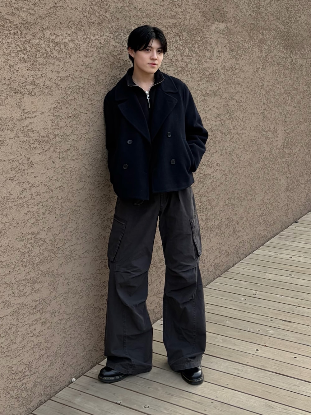 短丈ピーコート×カーゴパンツでキレイめカジュアル🌀 . フォローお待ちしてます👦🏻 IG→mahi_916