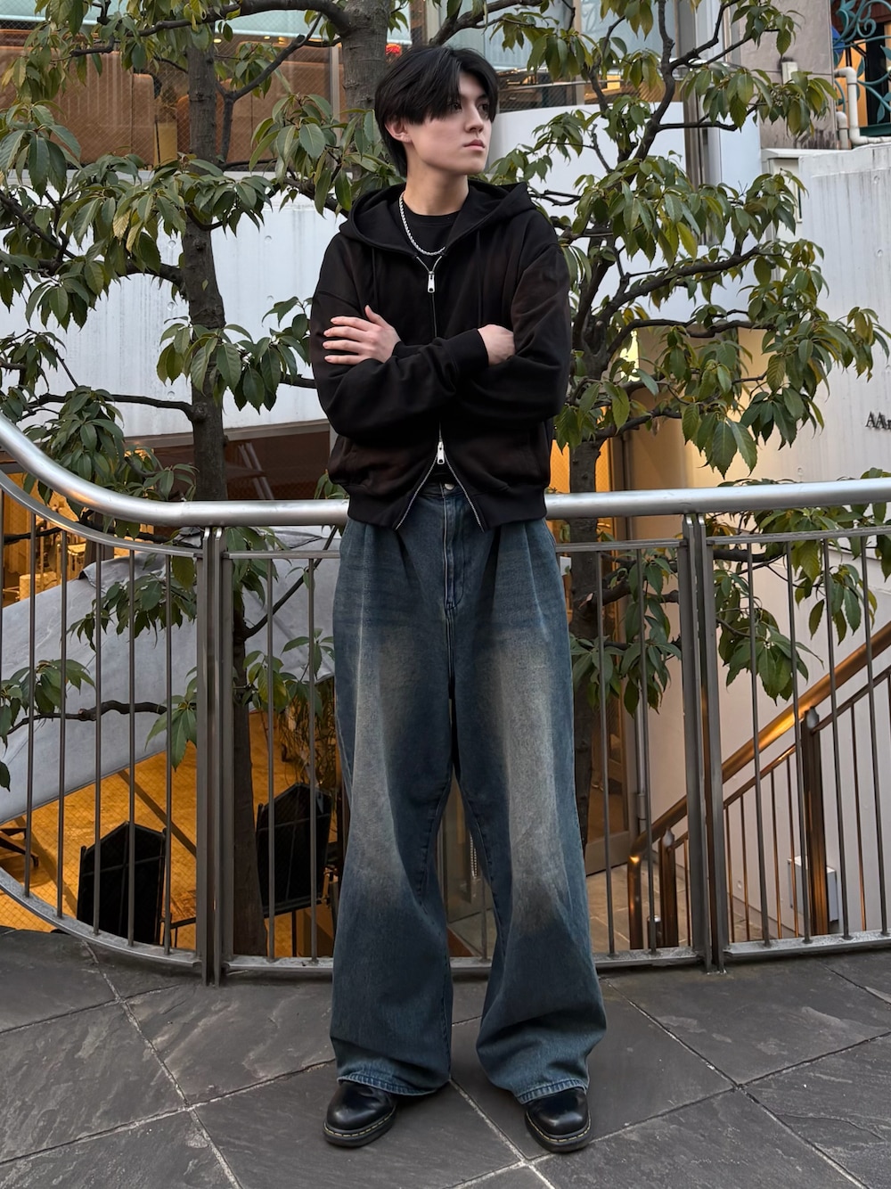 井上真宏のパーカー「Heavy weight double zip hoodie / ヘビーウェイトダブルジップフーディー (短丈)」を使ったコーディネート