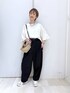 【イージーケアコクーンワイドパンツ】 イージーケア 洗濯後シワになりにくい イージードライ 洗濯後乾きやすい ストレッチ シルエットが綺麗に出る軽い素材で、絶妙なコクーンシルエットのパンツです。 存在感抜群でおしゃれ見え間違いないパンツです! フロント2タックがアクセントでシルエットかわいいです! 太目ベルトと高めのウエスト位置でスタイルUP効果も! ウエスト後ろはゴムなので着心地楽ちん! ヒップ~ももにかけてラインが出にくいので、腰回りを出すスタイルが苦手な方にもオススメです。 【乾きやすいスウェットプリント】 イージードライ 洗濯後乾きやすい イージーケア 洗濯後シワになりにくい 定番のプリントスウェットが7色のアソート柄に! それぞれイメージが異なるプリント柄はどれも合わせやすく、今年は可愛いワンちゃんのフォトプリントも加えています。 着丈違いのSHORTとREGULARの2サイズ展開で、体型やお好みの着こなしに合わせて選べます。 軽くて着心地の良いミニ裏毛は、洗濯後乾きやすくレジャーシーンにも使えるので長い期間使えます!! 二の腕もカバーできて毎年大人気のトップスです!