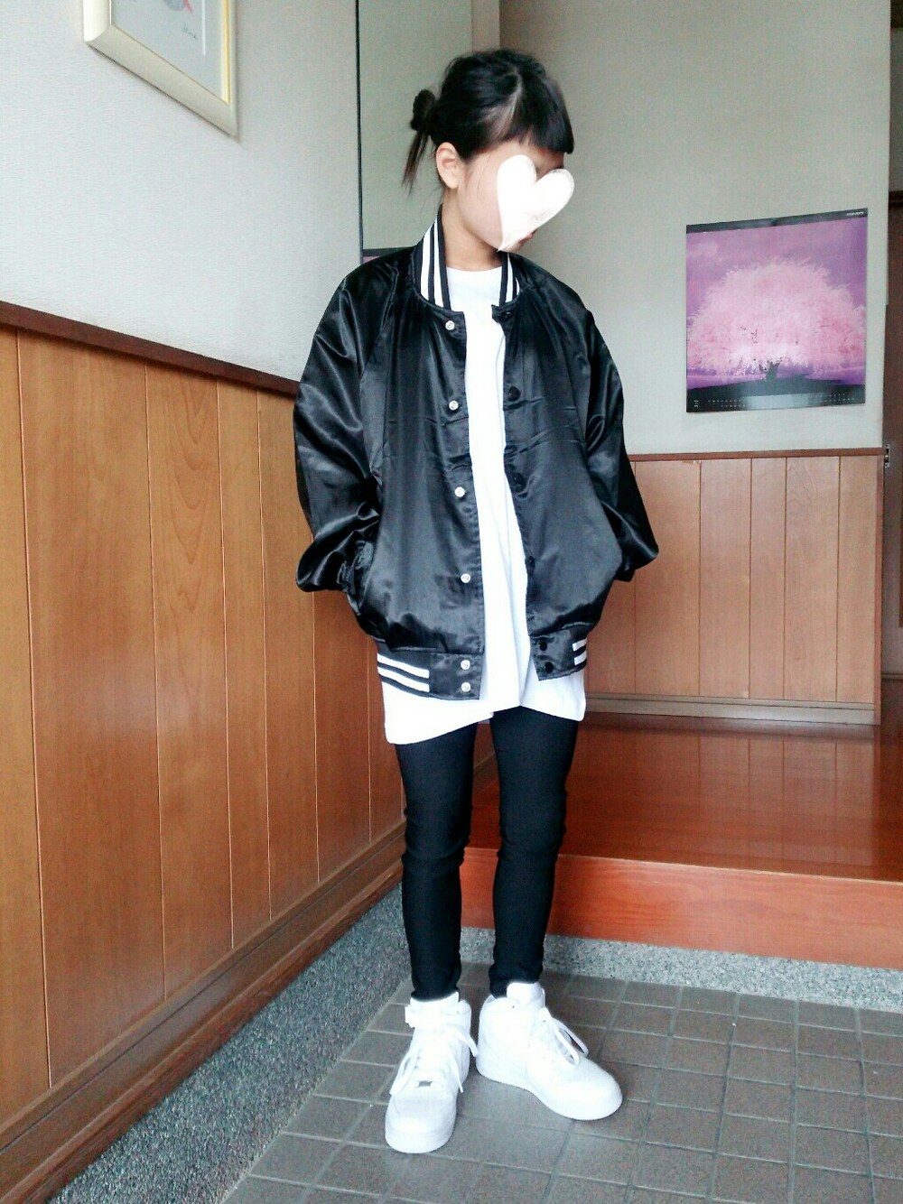 お久しぶりです😑😑 お久しぶりのmahiroです😑😑 1週間と3日、謎の微熱に侵されておりました😑😑 そんな中 発表会のリハに行ったら、また熱が上がり、治りませんでした😑😑 そして、病院に行ってインフル検査したら インフルじゃなかったです😑😑 で、現在 鼻水に襲われてます😑😑 先週と今週の説明はこのくらいです😑😑 なかなかWEAR開けずにいました😭😭 ほんとうにゴメンナサイ😭😭 今からお返事かえします😭😭 久しぶりのコーデは ダンスの衣装で先生が選んだスタジャンです!!!!! 中の白TはUNIQLOのmen'sのパックTのLです!!!! men'sのLですよ!!!! でかいけどこのサイズ感、好きです💗💗 そしてゴツスニーカー NIKEー!!air force 1!!! これもでかすぎる😂😂😂 全体的にサイズでかいです😑😑 今日はモノトーンの中に差し色ひとつもいれませんでした😑😑 こういう感じ好き~😑😑 黒と白好き~😑😑 もう今日は帽子もかぶりません!! で、 今からダンスです! 今日はJAZZです! 行ってきます! でわ 💋☺