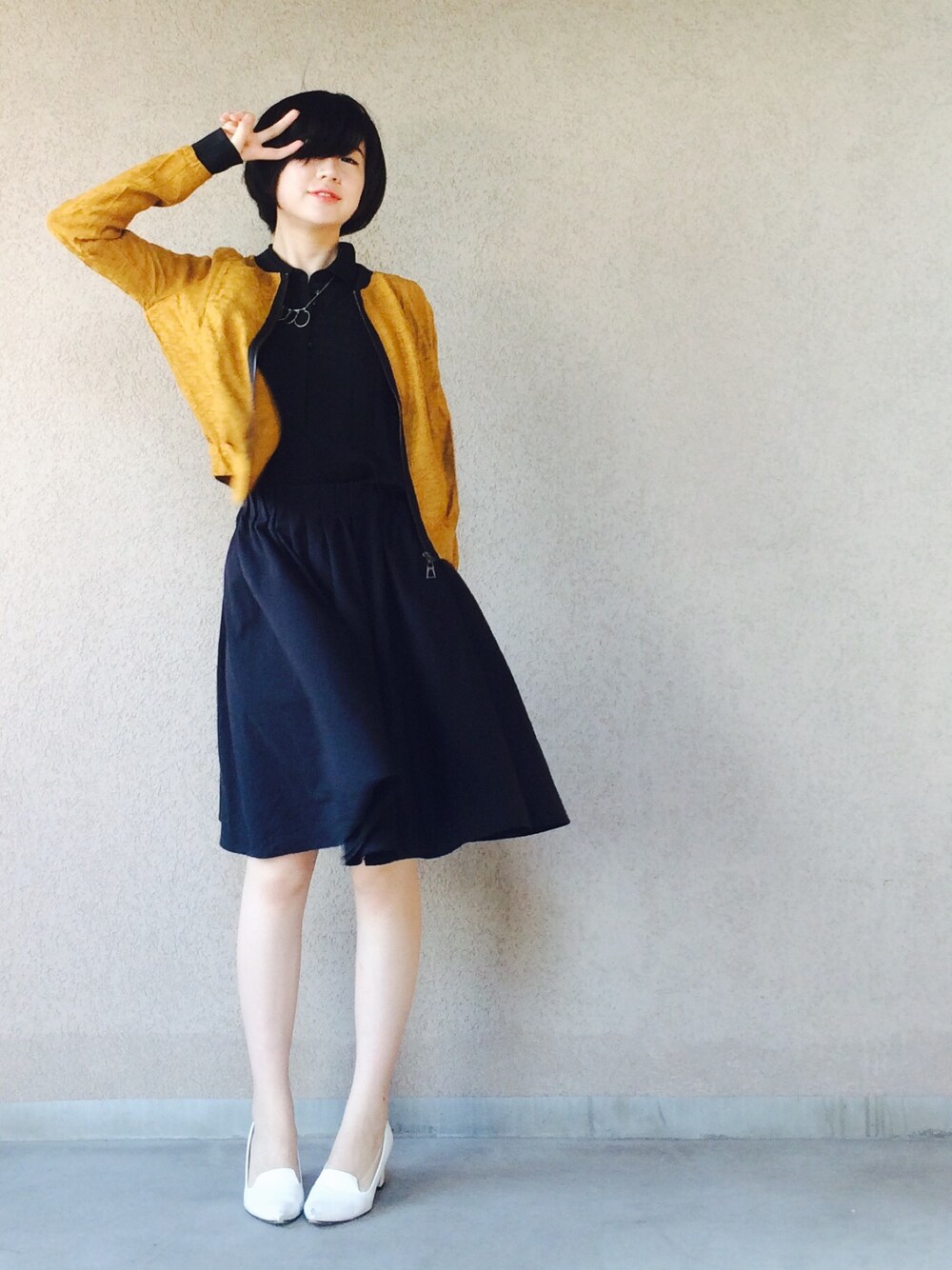 先日の大雨洪水と今朝の地震と… 日本がとても不安定な今日この頃ですが、それぞれに救ってくれる何かがあることを切に願います。 秋なので、黒黒黒。 差し色にマスタード色。 靴は相も変わらずREZOYのこの子。
