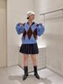 アーガイルニット、スカート×レザーブーツ ミニスカートだから可愛いけど、可愛すぎない!バランスのとれたコーディネートです!