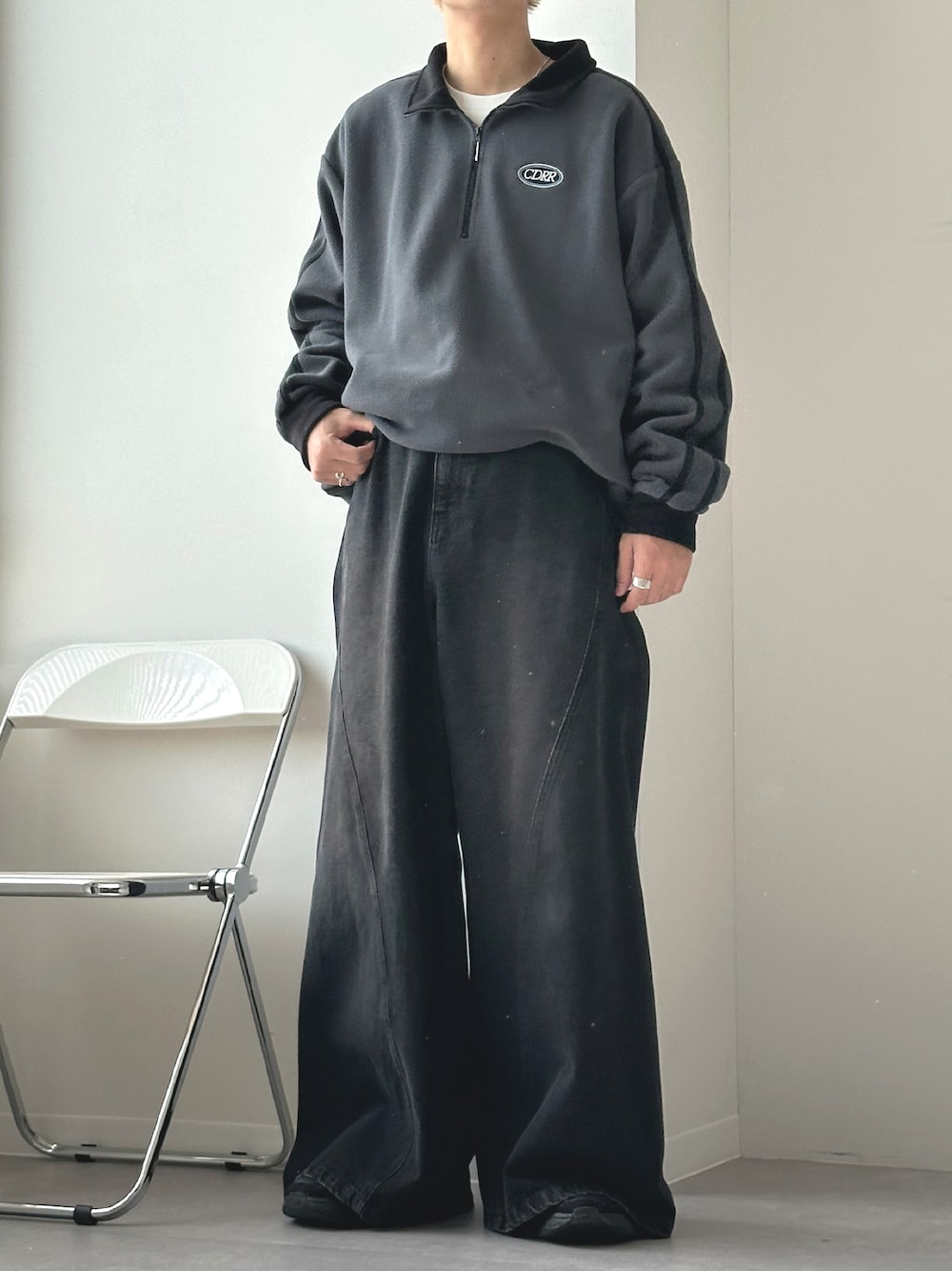 まほーんのスウェット「【CODDERR】配色 ロゴ刺繍フリースアノラックハーフジッププルオーバー」を使ったコーディネート