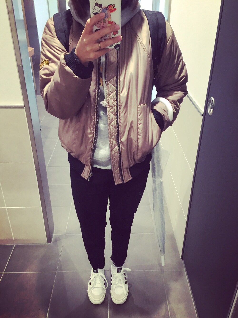 今日雨ですね〜☔︎ 雨なのに白のスニーカーをあえて 履きました👟👟 病み上がりなので寒くないように 重ね着‼︎ みなさん風邪にご注意くださーい☺︎