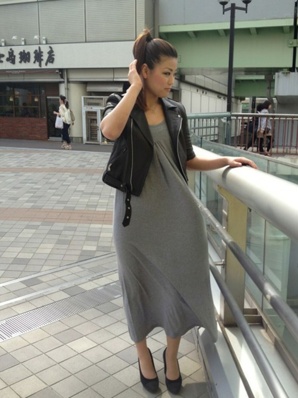 カットソー素材のマキシ丈ワンピースは着心地抜群! ライダースもラムレザーで馴染みが良く、5分丈なので 長期間着用していただけます。