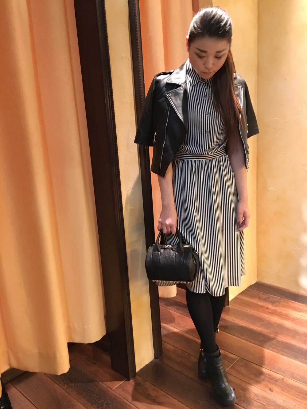 半袖のシャツワンピをカッコよくコーディネートしてみました。 夏場は1枚でサラッと着れる上に、丈はしっかりあるので長身の方でもバッチリ‼︎ レザーはハーフスリーブなので、中途半端な時期に大活躍してくれます。