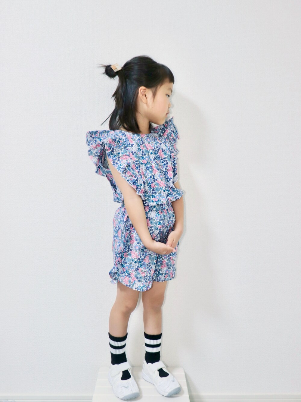 echico☺︎︎のシャツ/ブラウス「ビッグ肩フリル総柄半袖ガールズブラウス」を使ったコーディネート