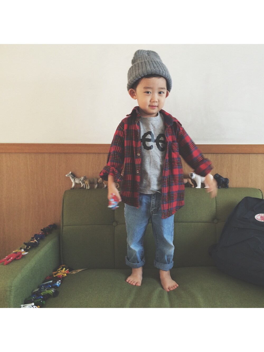 よーーーくみると… お気に入りのおもちゃ達が同じ種類ごとに きれいにならべてあります 笑 たまにやるんですよね、これ ^ ^ なんなんだろ (笑) シャツとデニムはこれまた古着屋での 掘り出し物 ♪