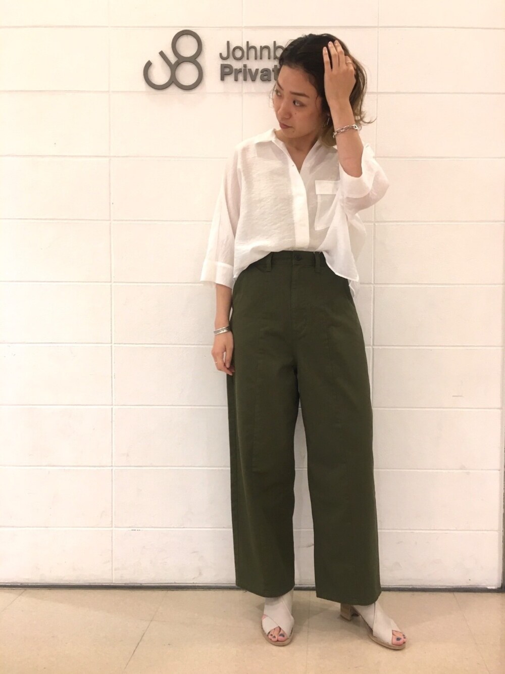 二回連続オリーブパンツ☝️ 先日アップしたビッグジーンズの チノバージョンです。 ちゃくちゃ良い!ハリがあって 軽くて涼しくってカッコ良くってでも 丸みのあるシルエットで女らしさもある。 白シャツとシンプルに合わせてできる女風に… 実際にできるかどうかは…定かではない。