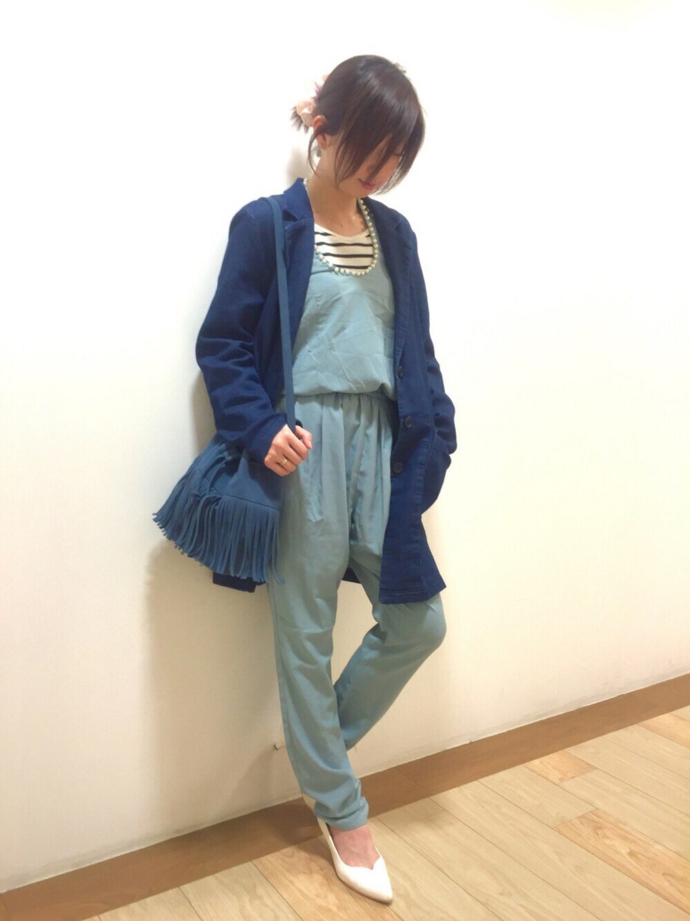 休日デートコーデ💕 オールインワンを主役にブルー系でまとめた爽やか春コーデ🌸 デニムチェスターはしまむらで安くGET❗️ オールインワンもセールで2000円でGET❗️ バックはこないだからお世話になってるメチャカリです😋フリンジバック可愛いくてこれも欲しい気持ちにかられてます😭葛藤💦 ポニーテール🐴とゆうかラビット🐰テール(笑) 今日は遅ればせながらホワイトデーのプレゼント買ってもらいました😋❤️ 噂の落ちにくいイブサンローランの💄✨ 通称リップネイル✨(知ってる?) 付けてから10秒乾かすとネイルみたいに着色してくれる不思議なグロス😍💚 💄慣れしてない私ですが、頑張って使い切ります✌️てか、こんなお高い💄は人生初です(笑) ありがたや〜〜〜😭✨🙏